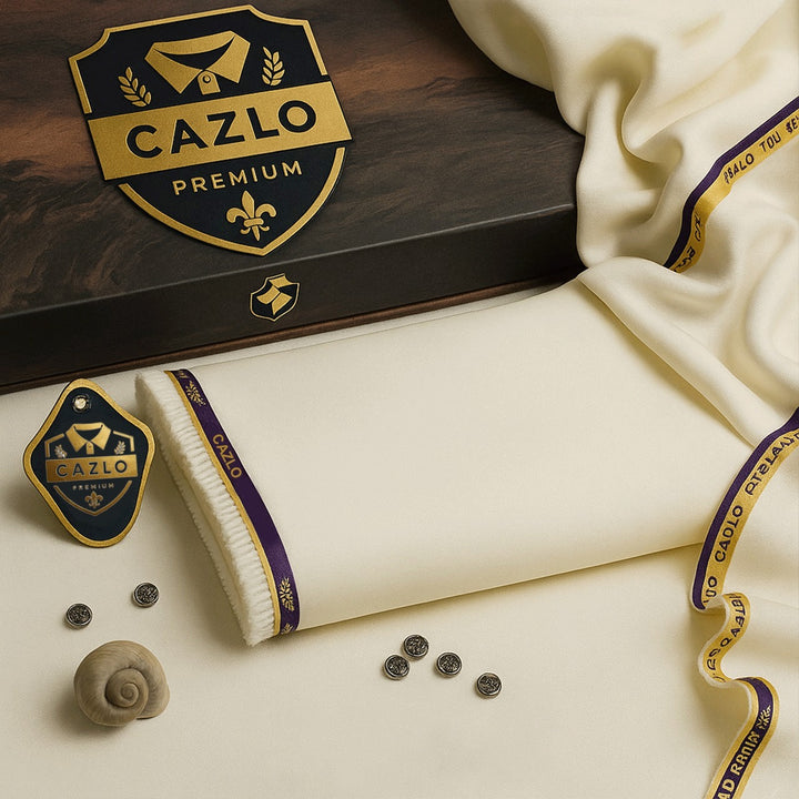 CREAM COTTON UNSTITCHED KAMEEZ SHALWAR FABRIC