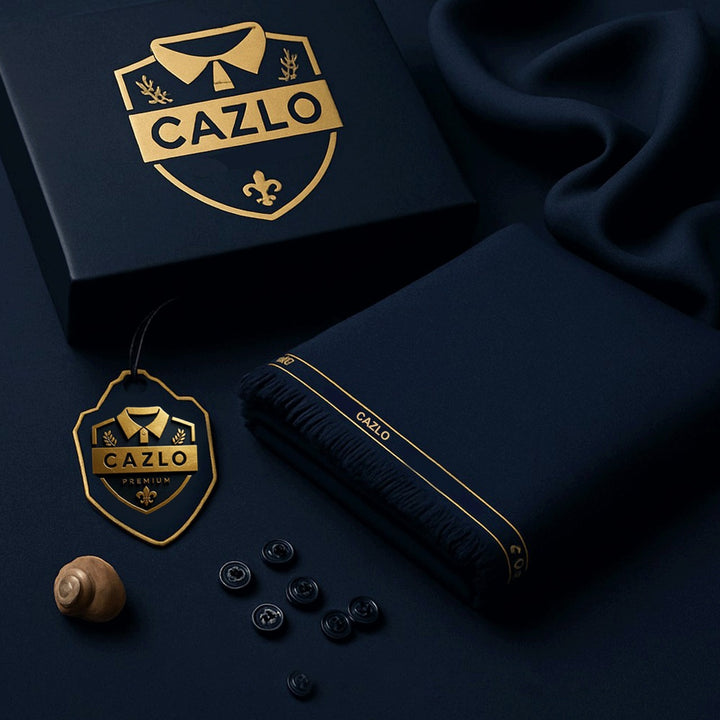 NAVY BLUE COTTON UNSTITCHED KAMEEZ SHALWAR FABRIC